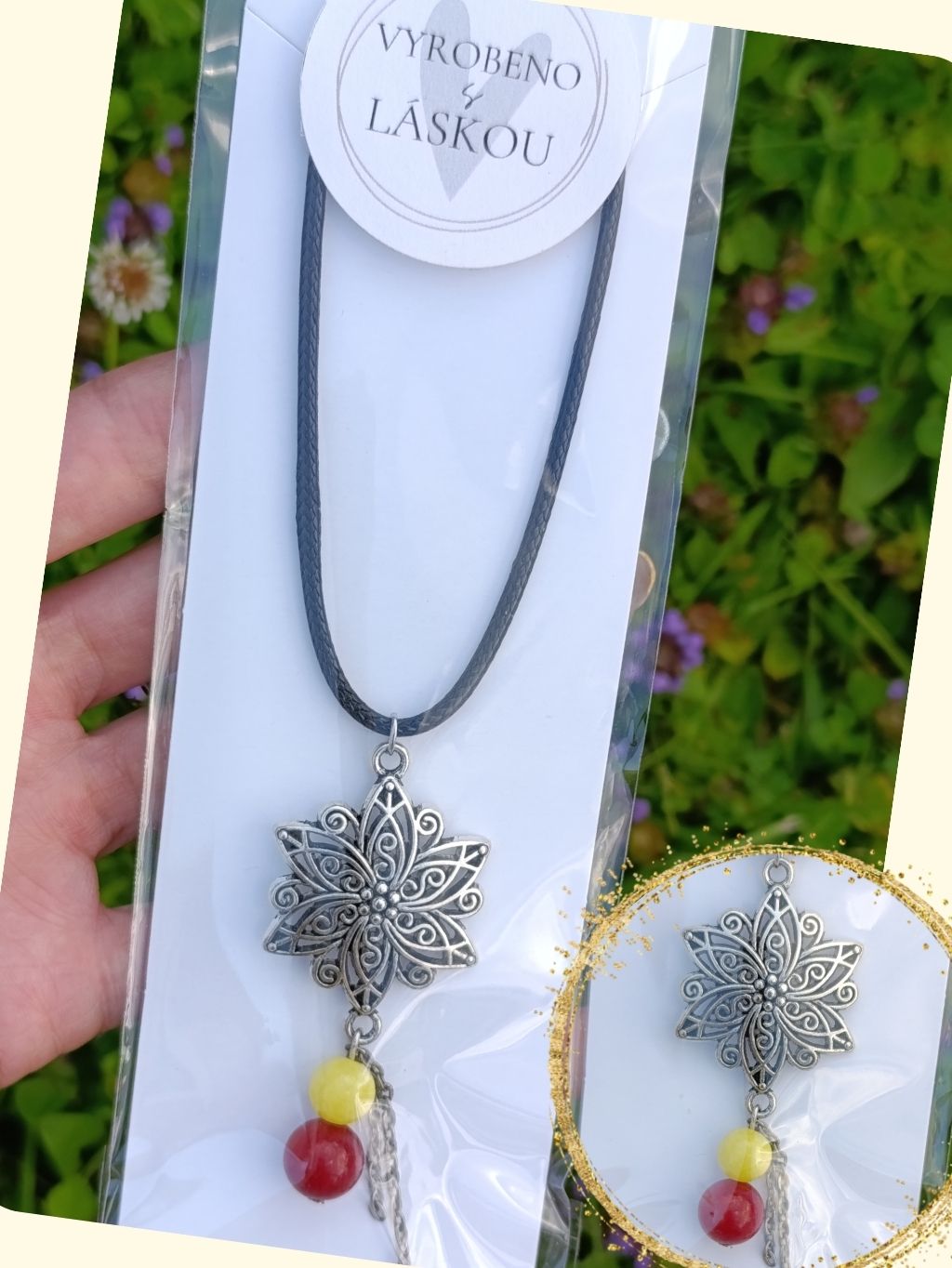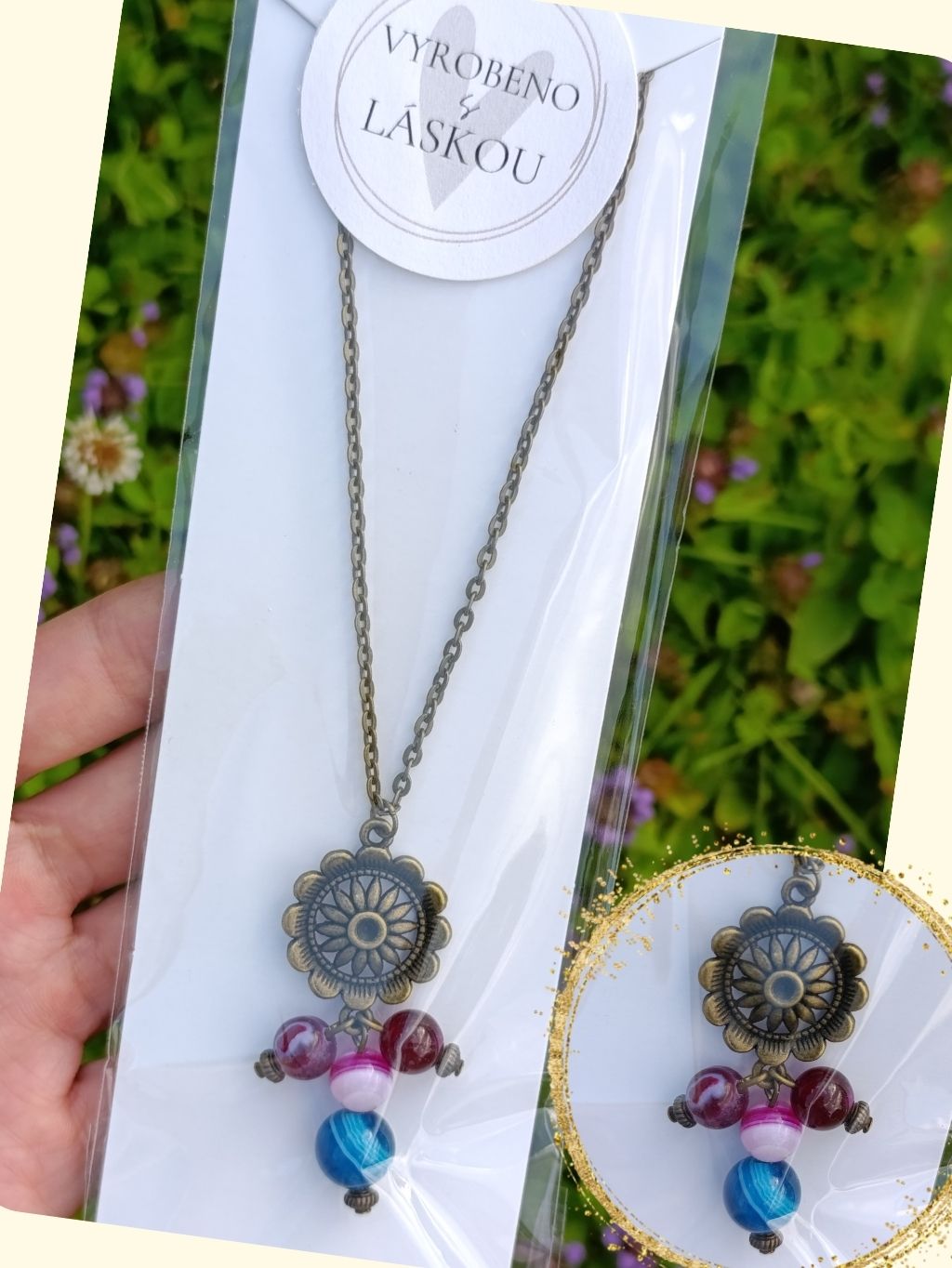 Materiál: směs kovů s minerálními kameny nebo bez nich na kartě (šňůrky a řetízky lze po dohodě vyměnit)