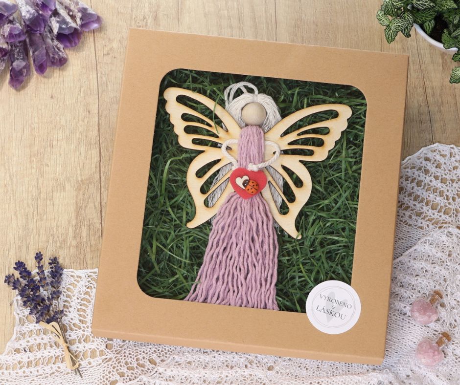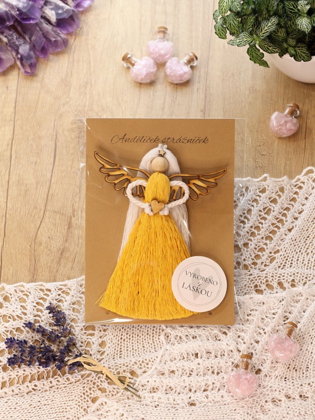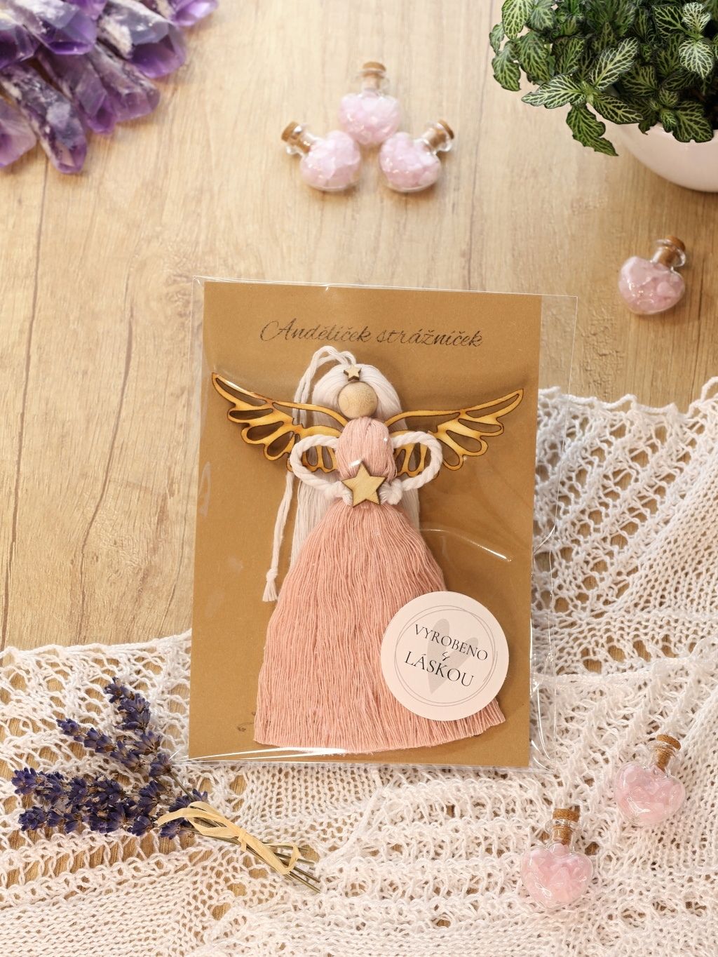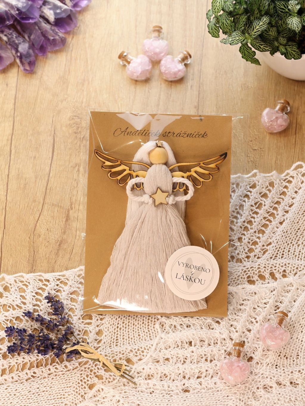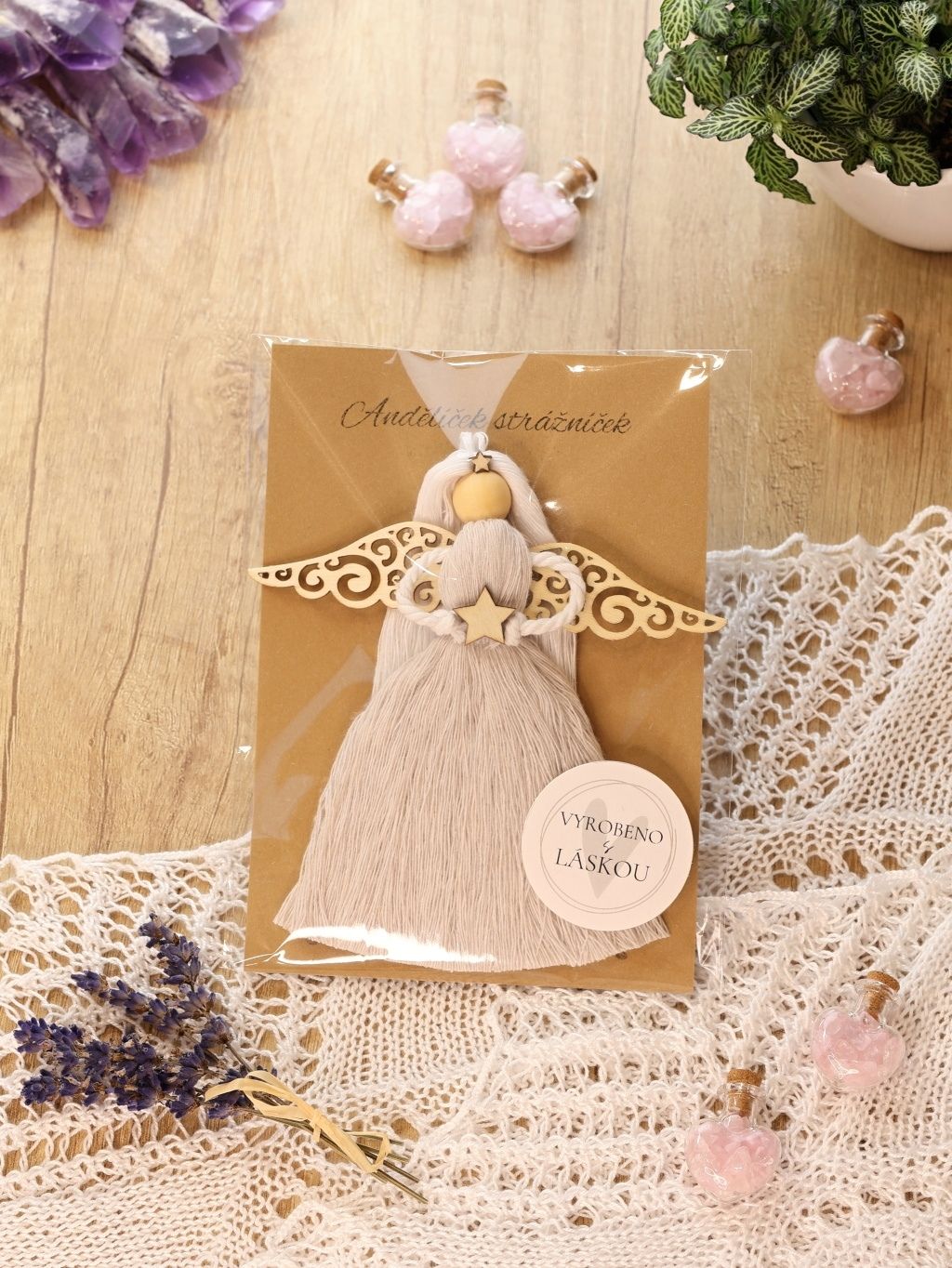 Macramé Andělíček strážníček vás na Vánoce naladí, dárkem potěší i dušičku láskou pohladí.