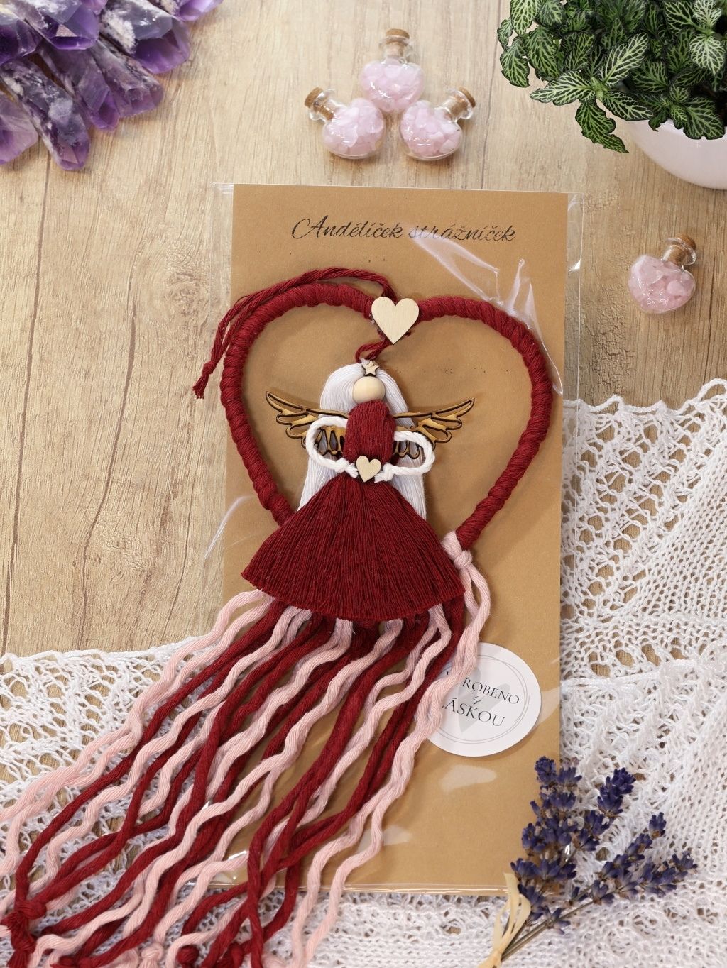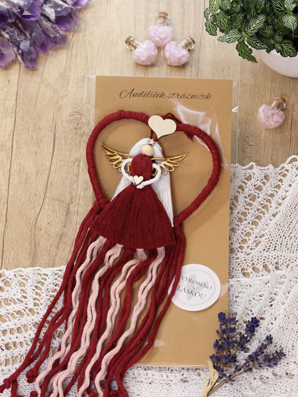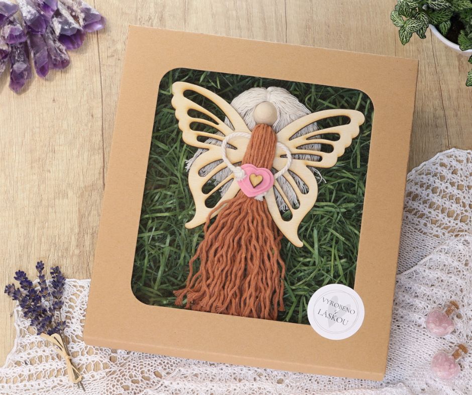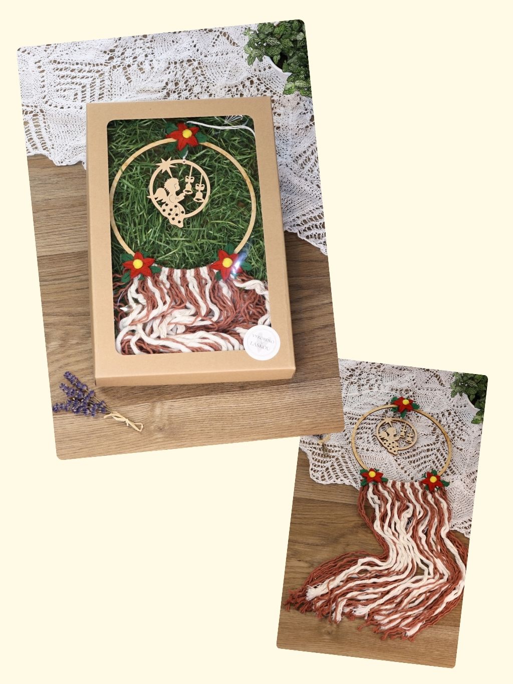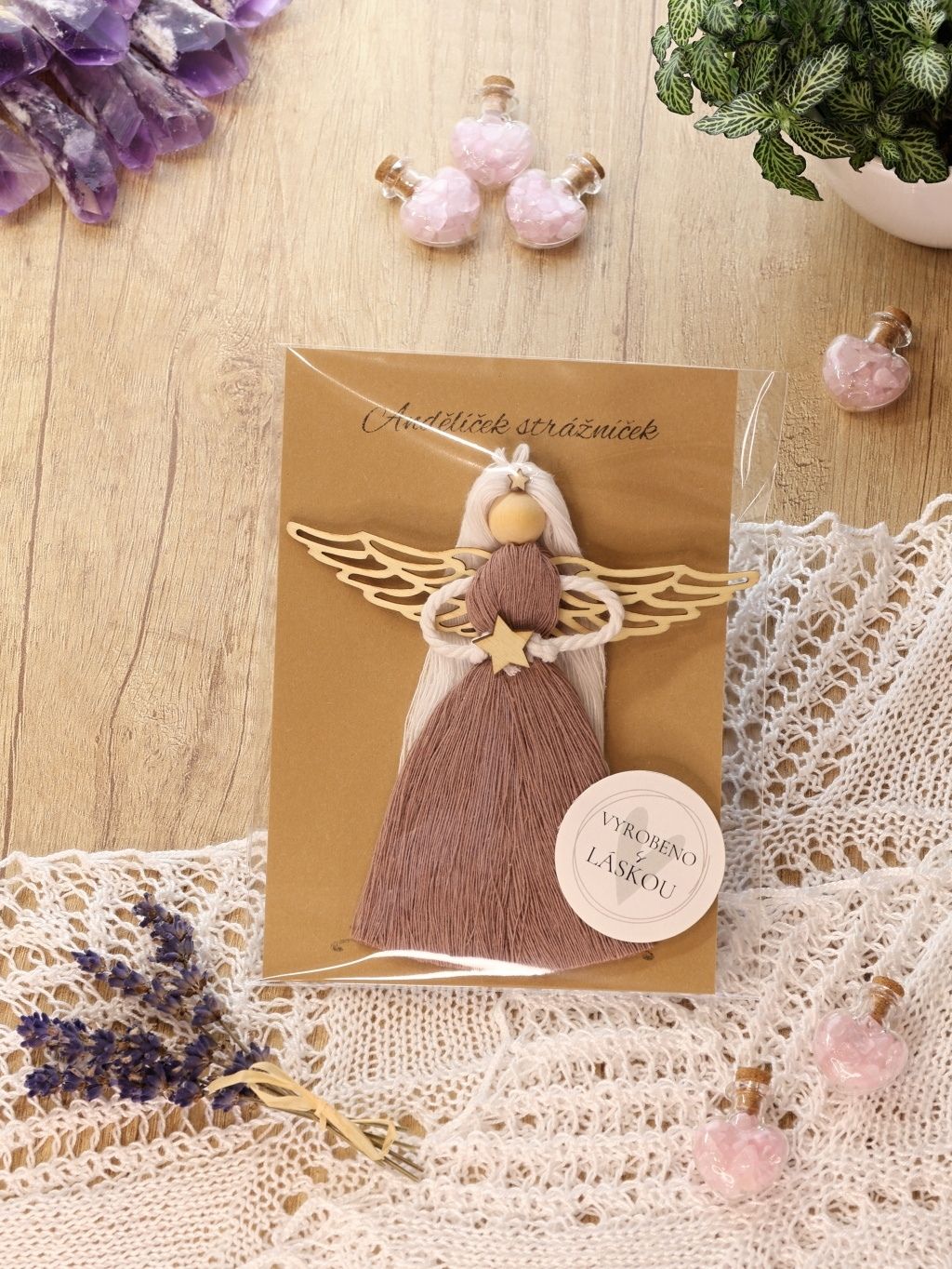 Macramé Andělíček strážníček vás na Vánoce naladí, dárkem potěší i dušičku láskou pohladí.