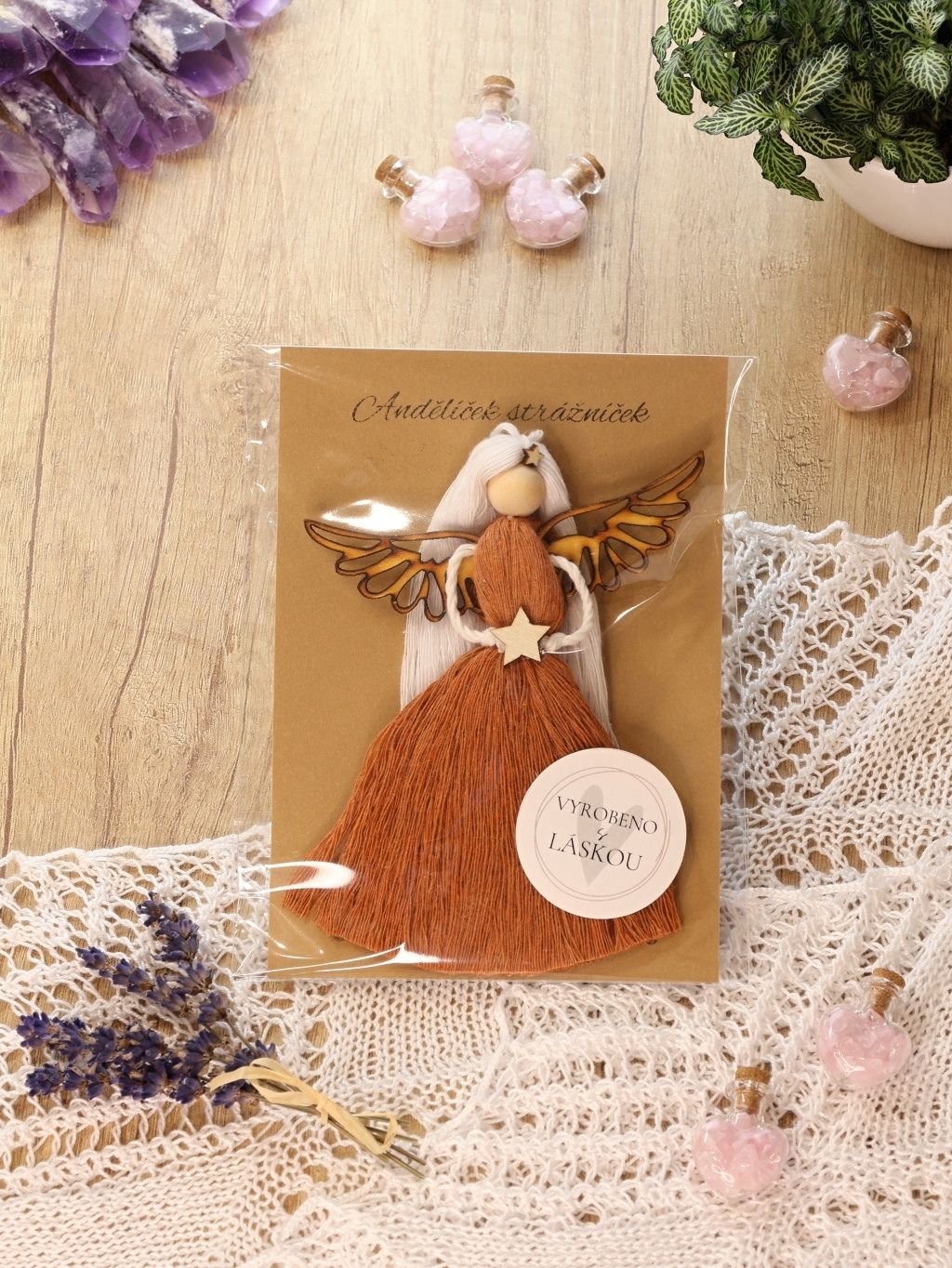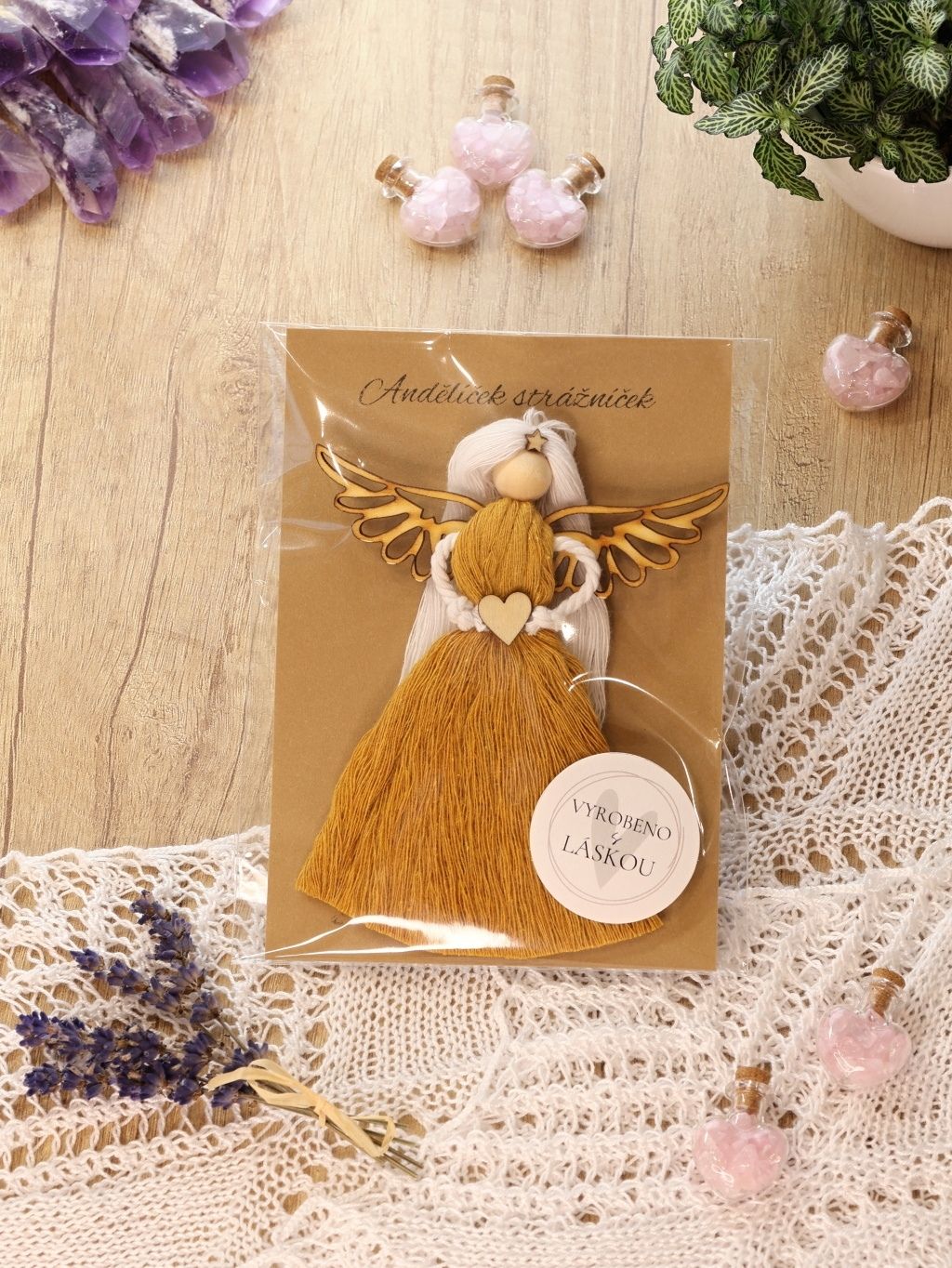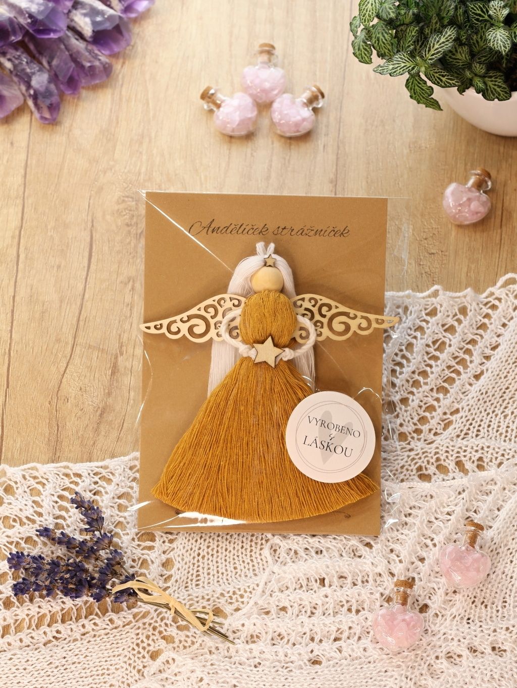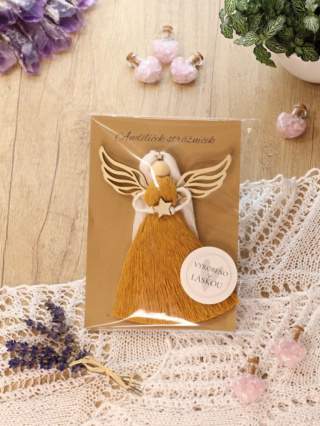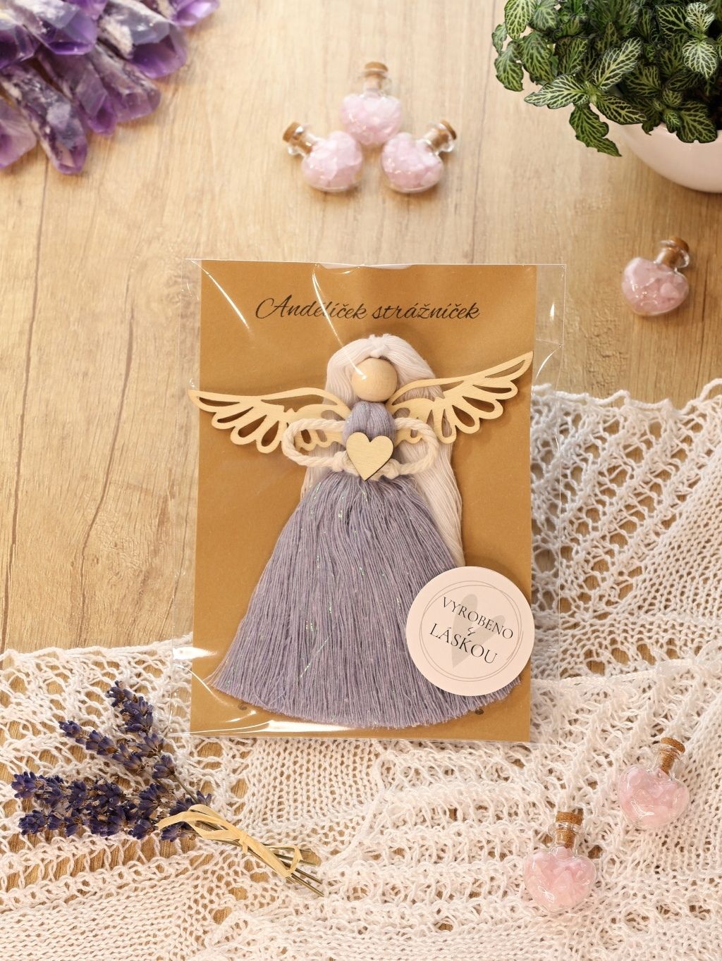Macramé Andělíček strážníček vás na Vánoce naladí, dárkem potěší i dušičku láskou pohladí.