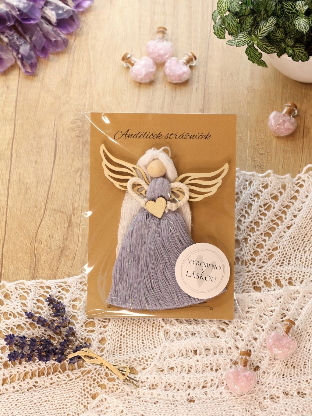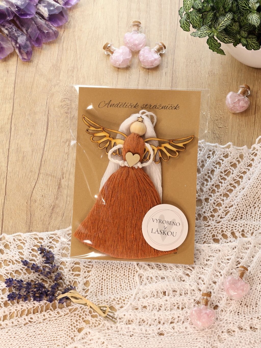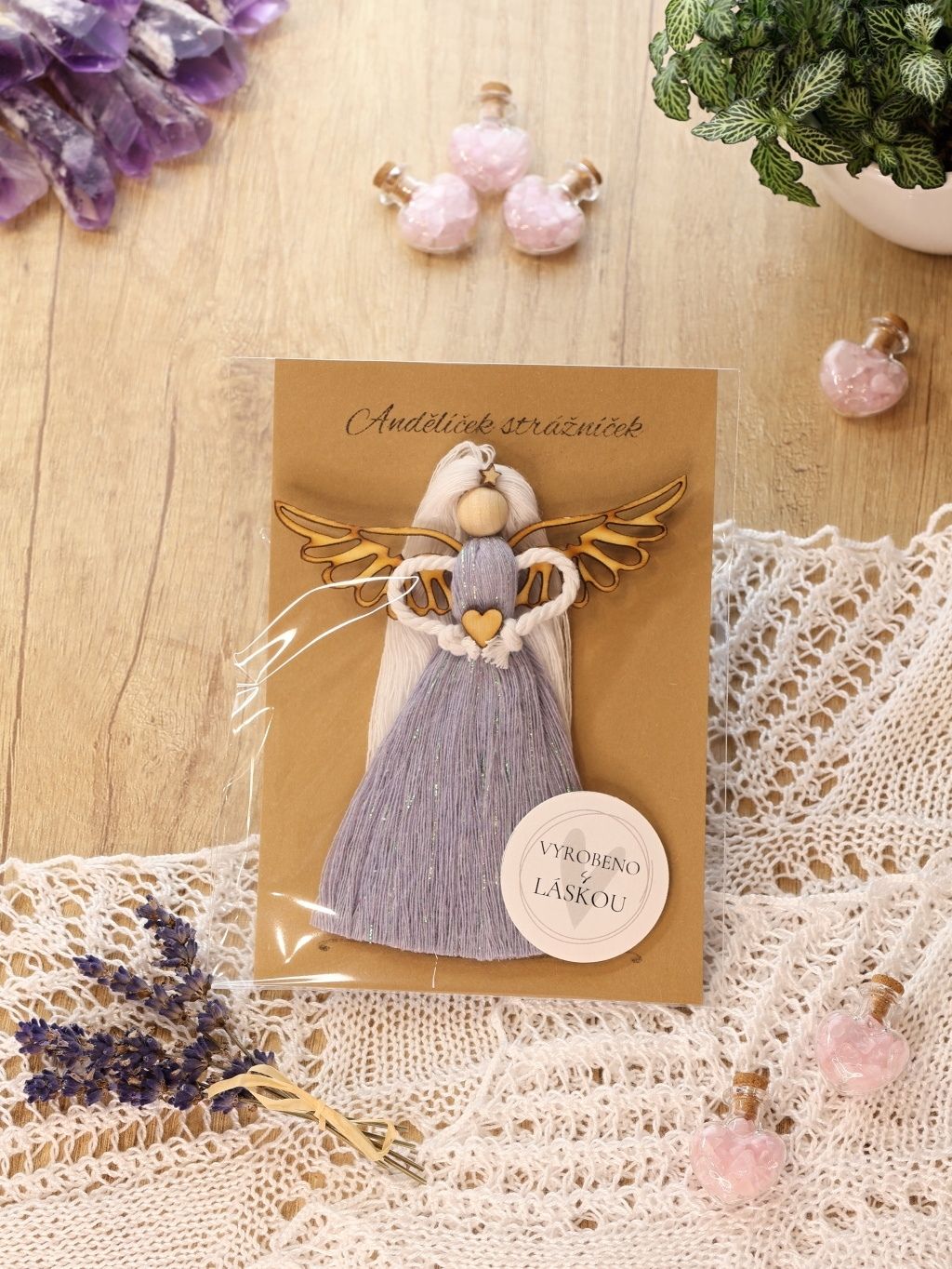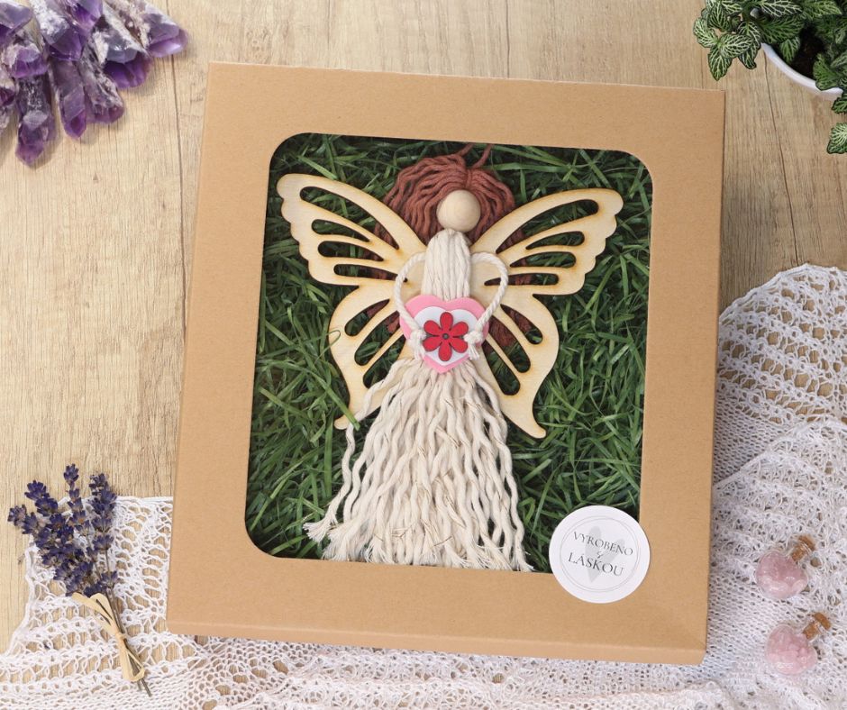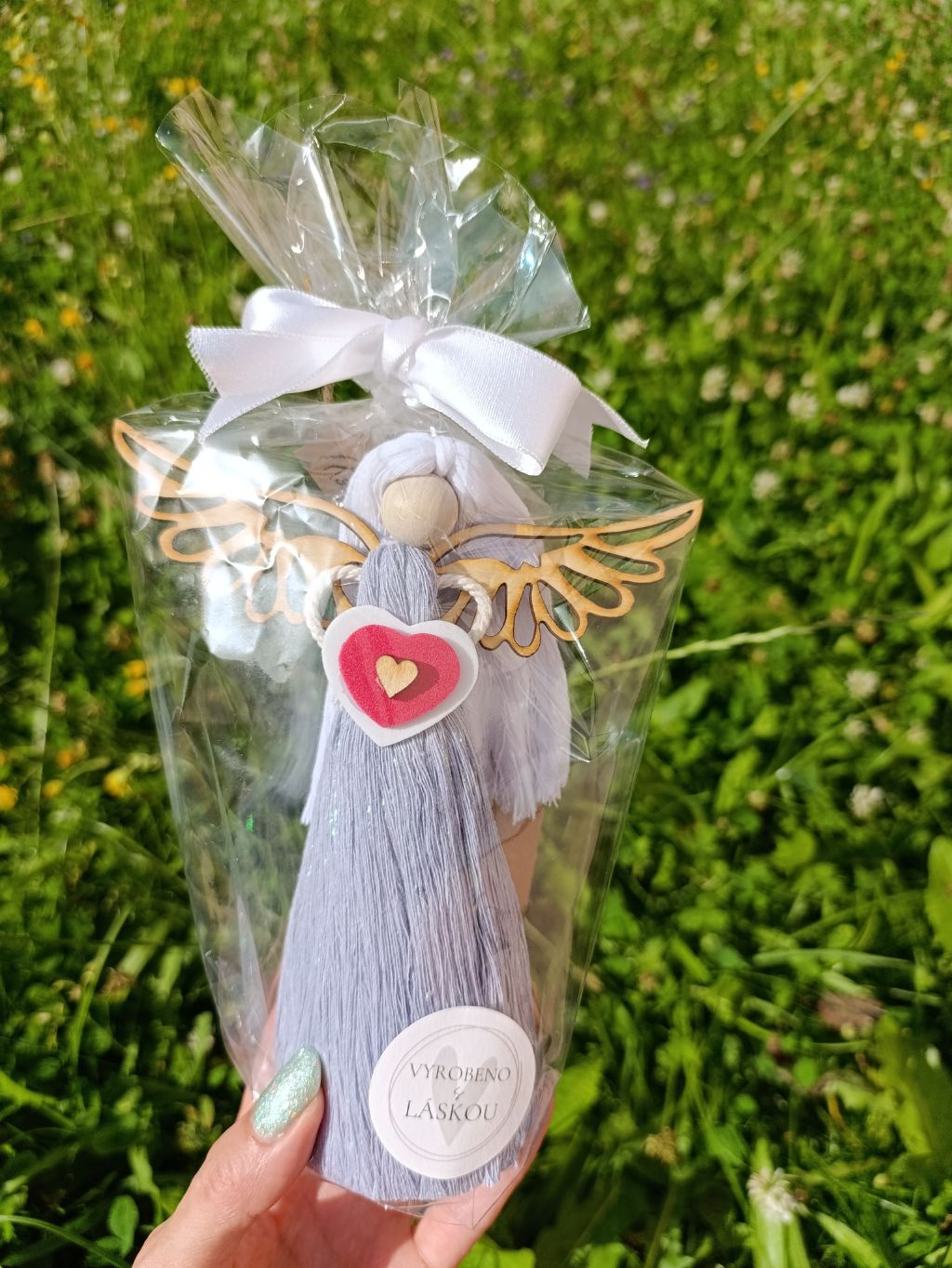 Macramé Andělíček strážníček vás na Vánoce naladí, dárkem potěší i dušičku láskou pohladí.