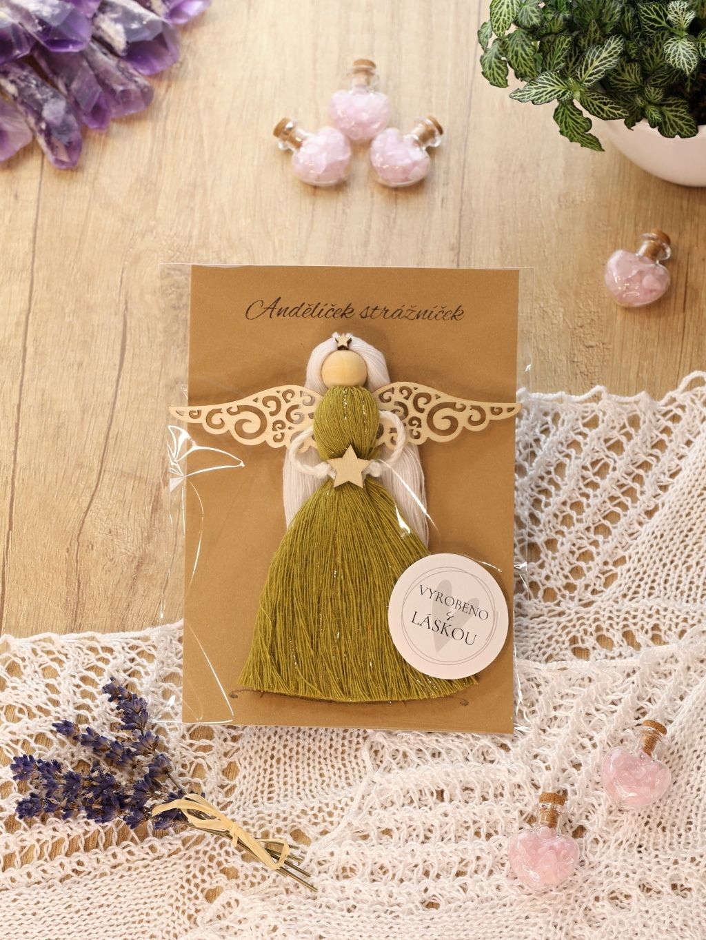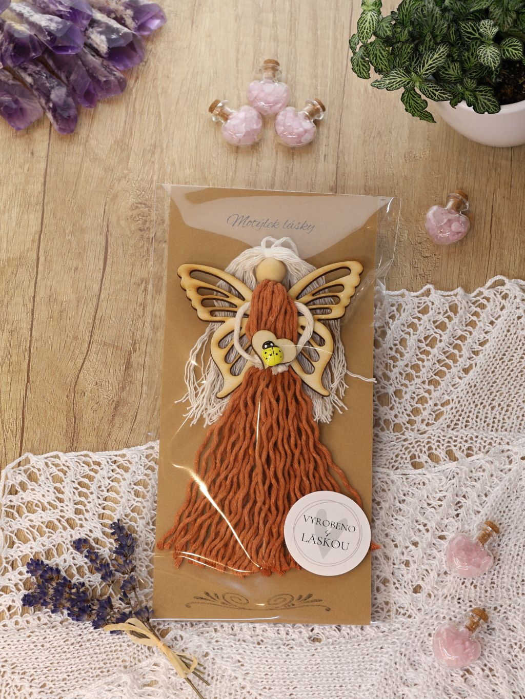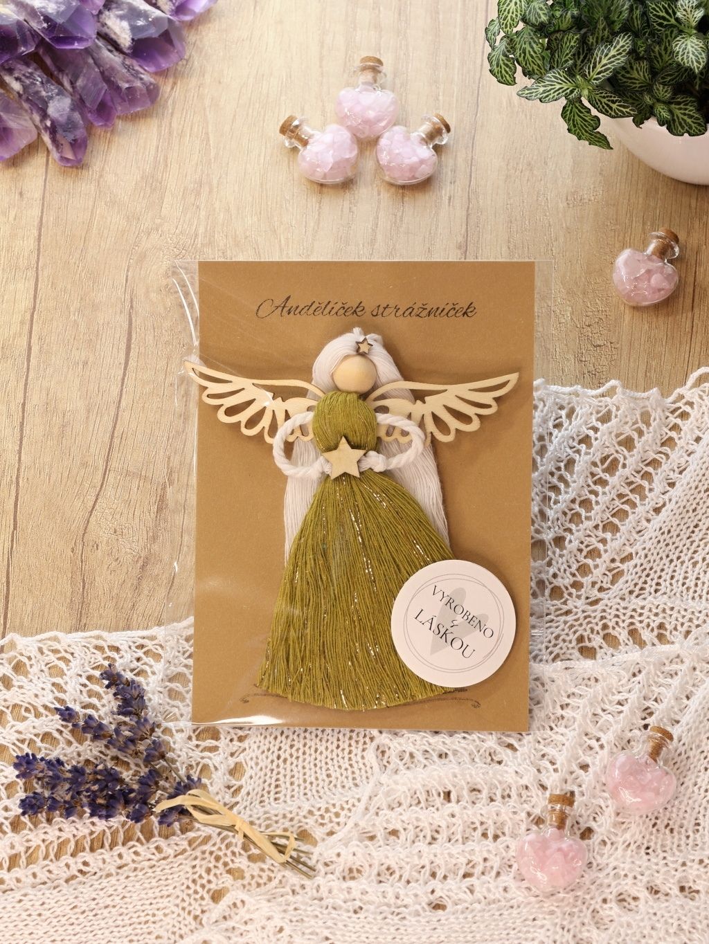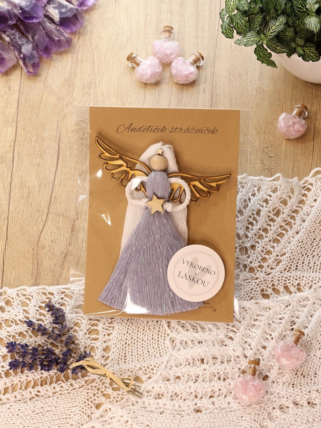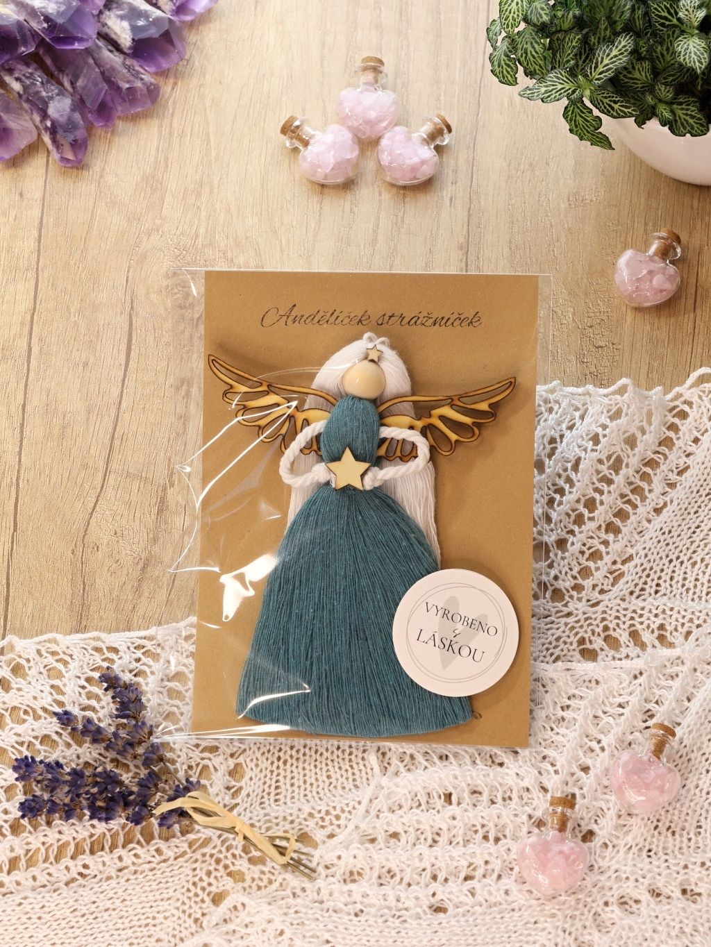 Macramé Andělíček strážníček vás na Vánoce naladí, dárkem potěší i dušičku láskou pohladí.
