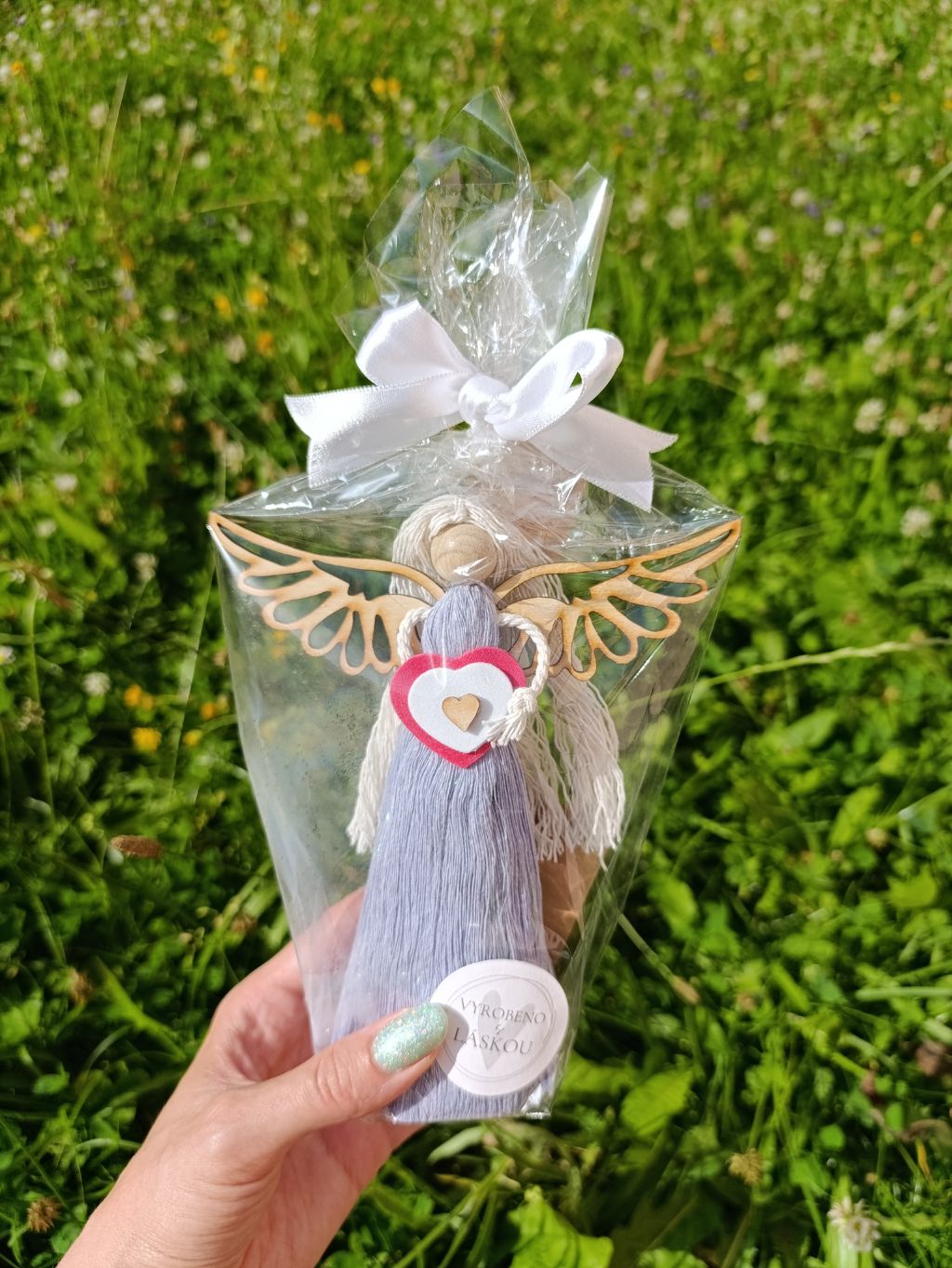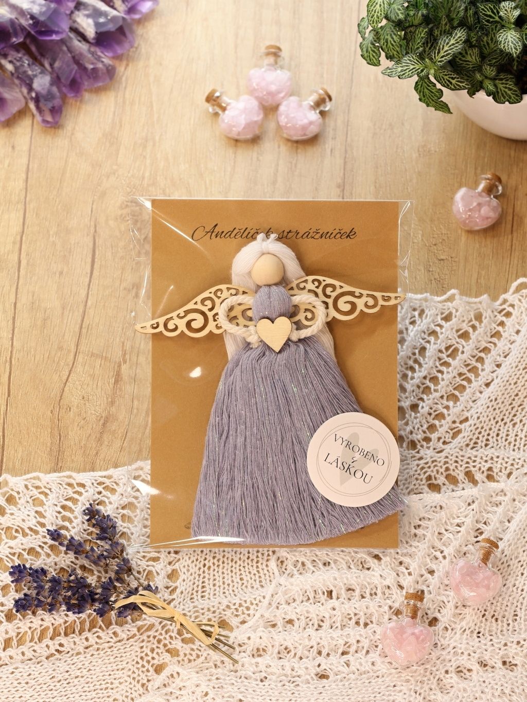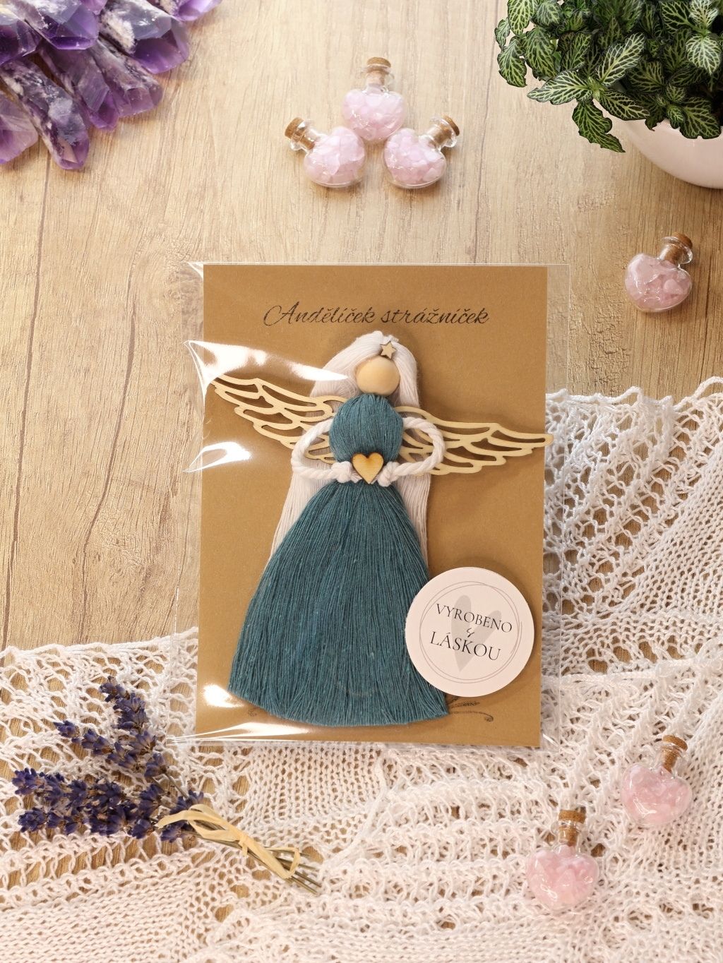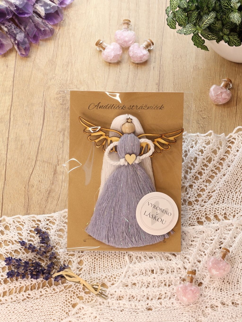 Macramé Andělíček strážníček vás na Vánoce naladí, dárkem potěší i dušičku láskou pohladí.