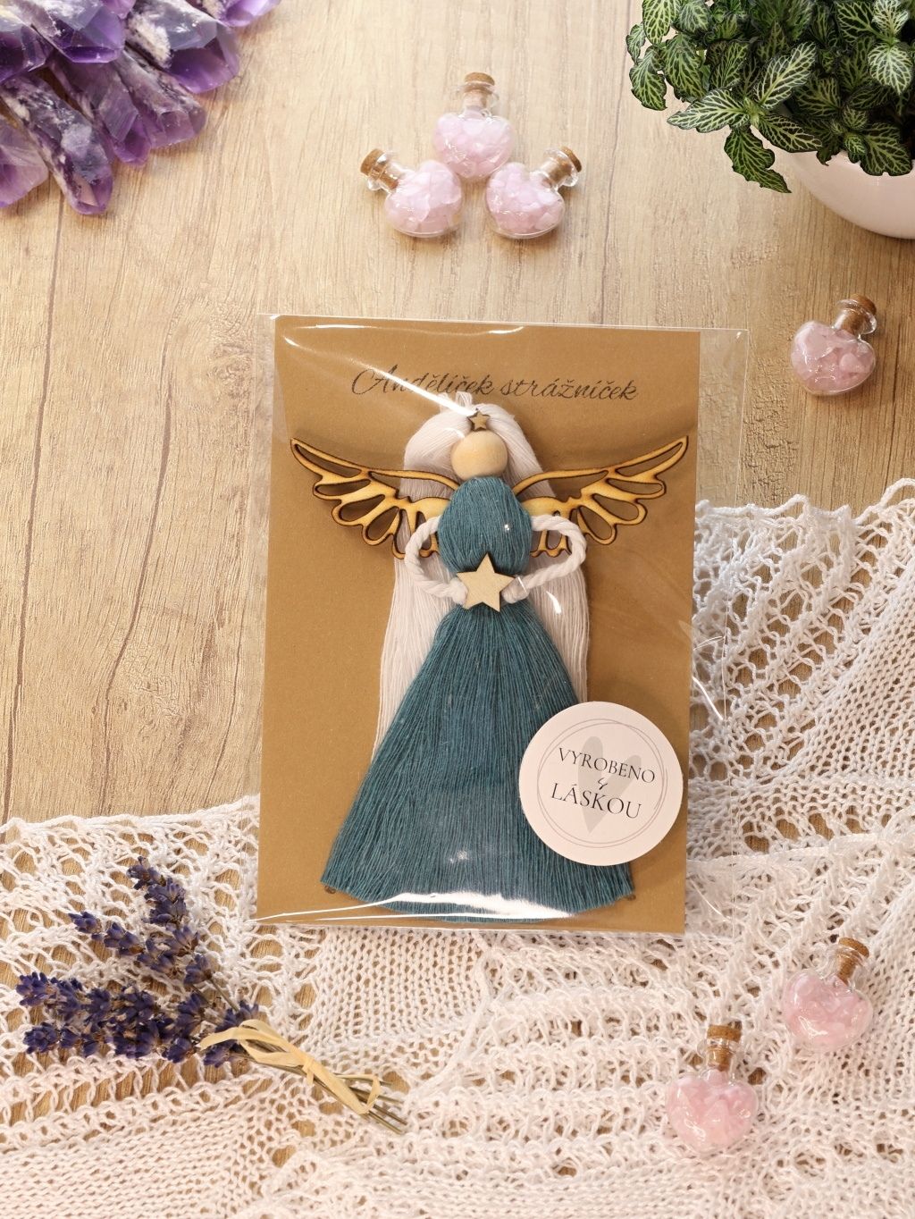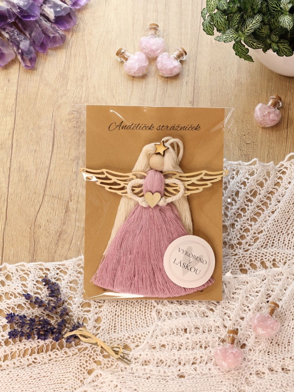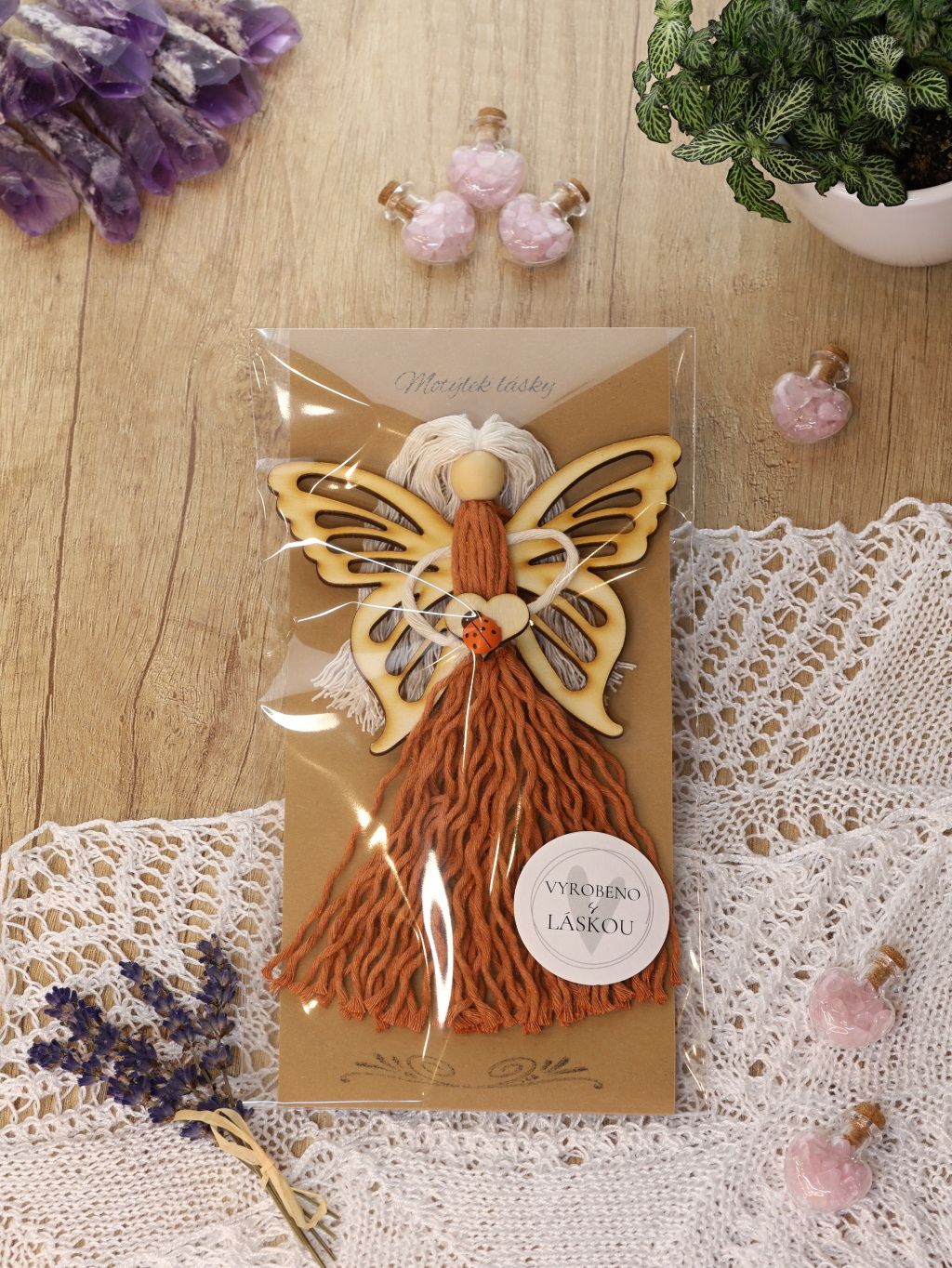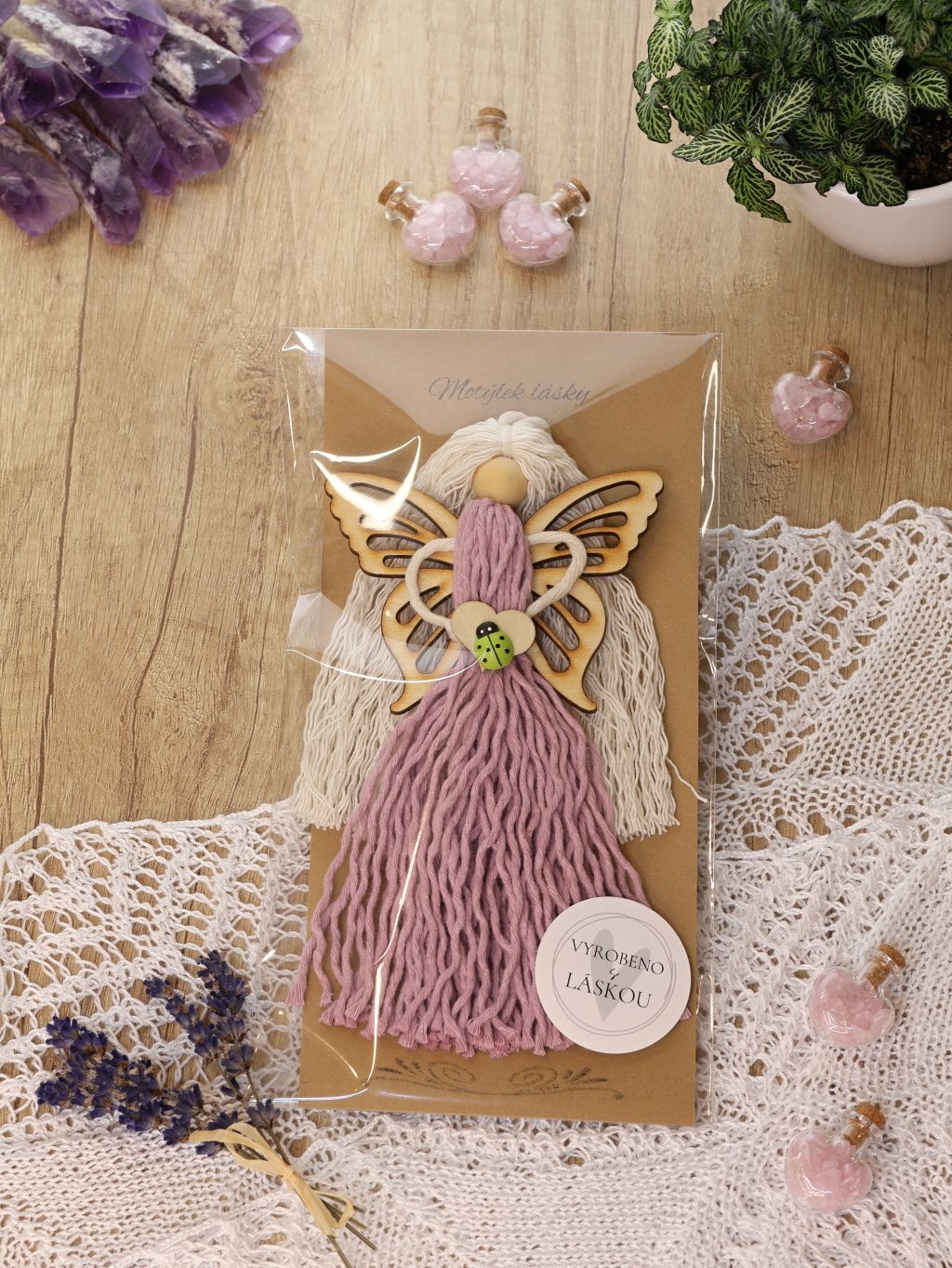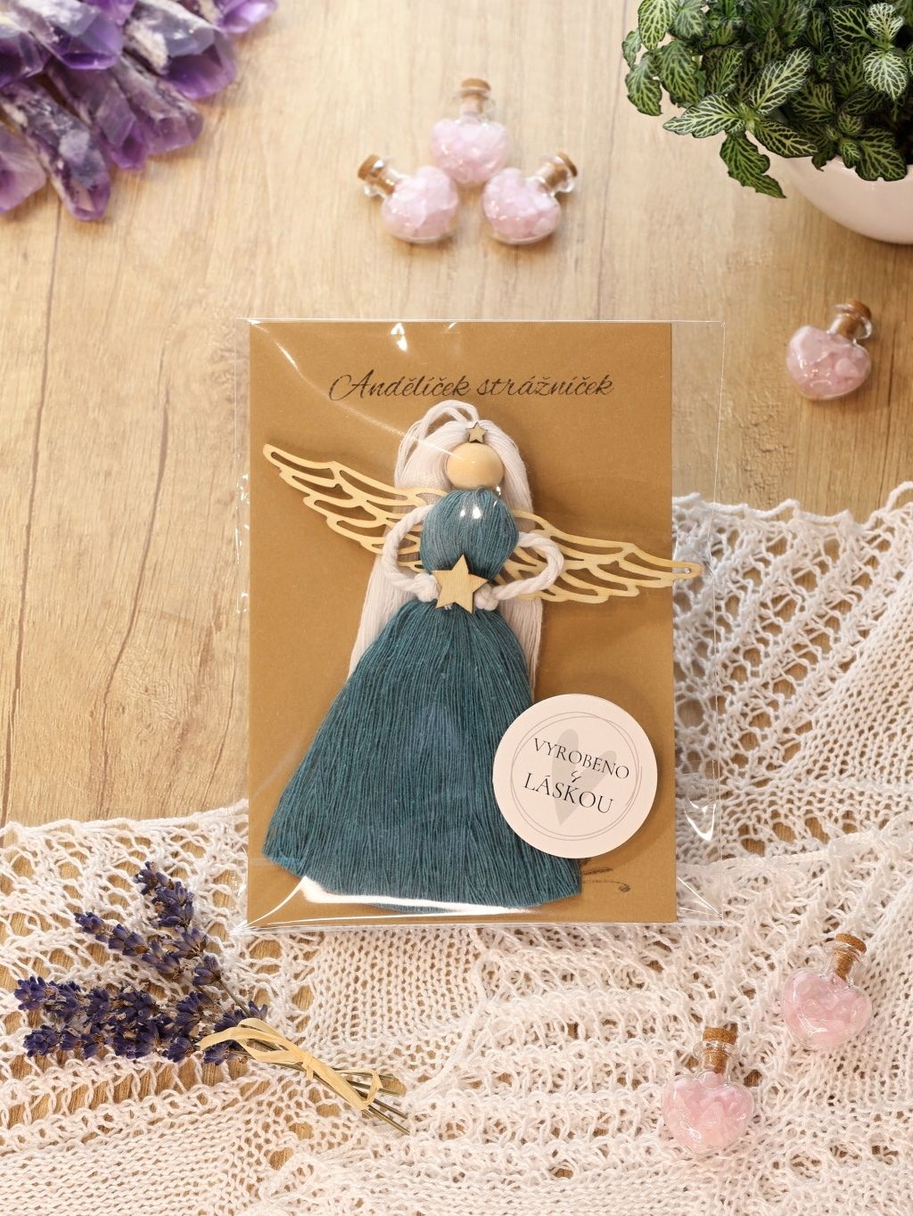 Macramé Andělíček strážníček vás na Vánoce naladí, dárkem potěší i dušičku láskou pohladí.
