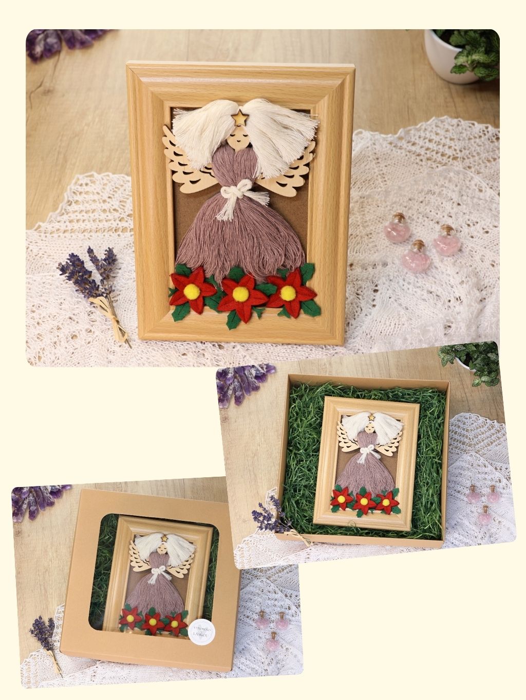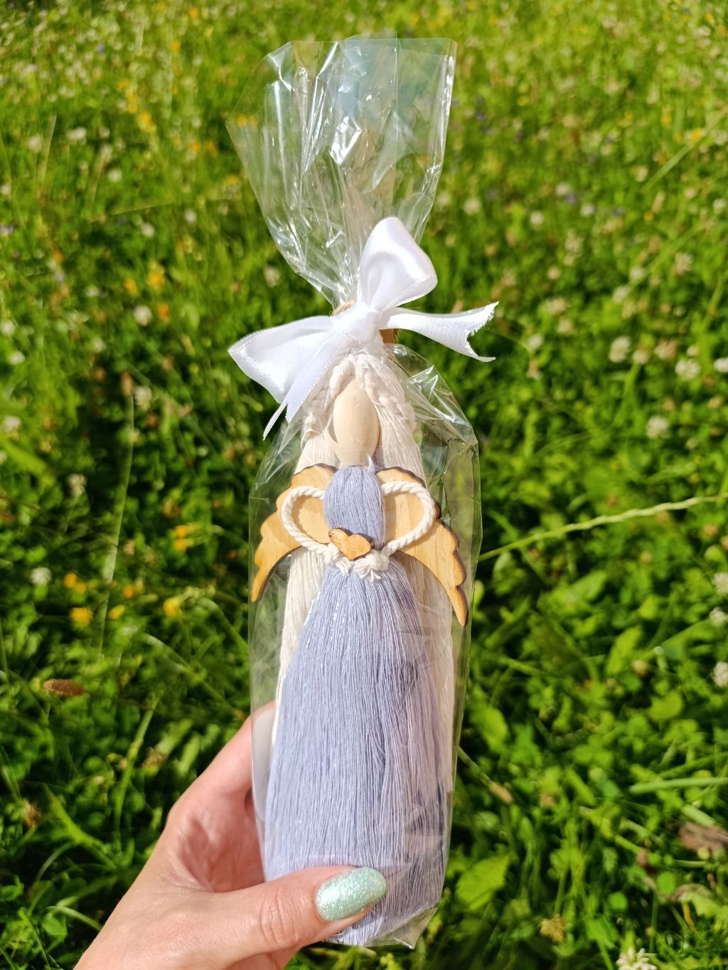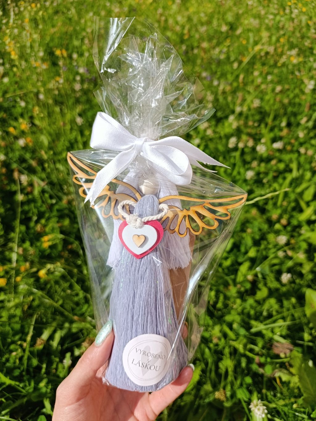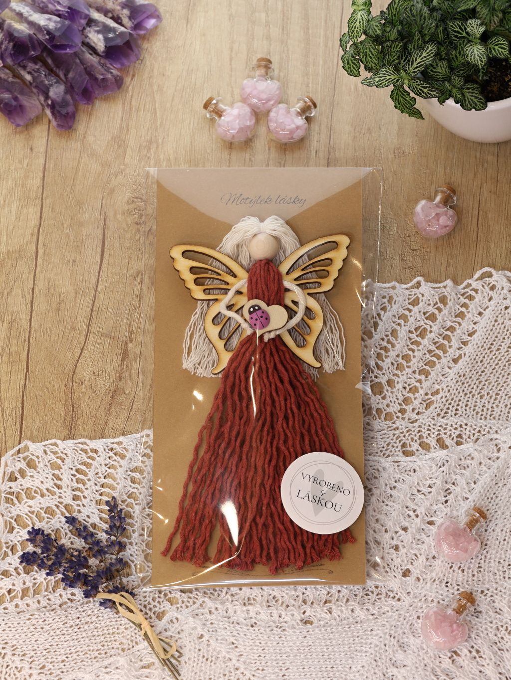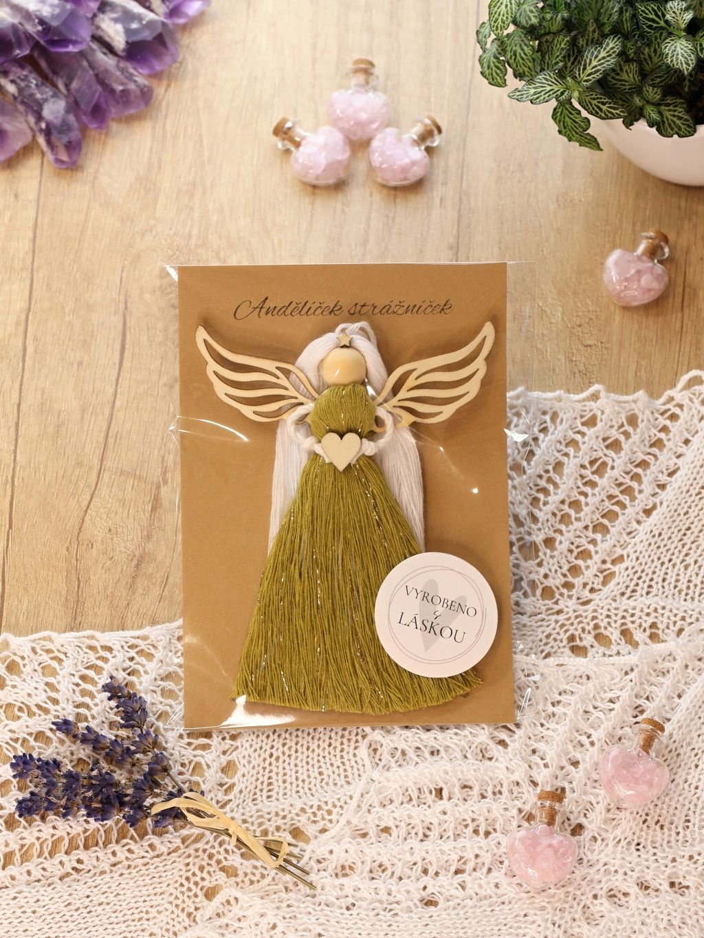 Macramé Andělíček strážníček vás na Vánoce naladí, dárkem potěší i dušičku láskou pohladí.