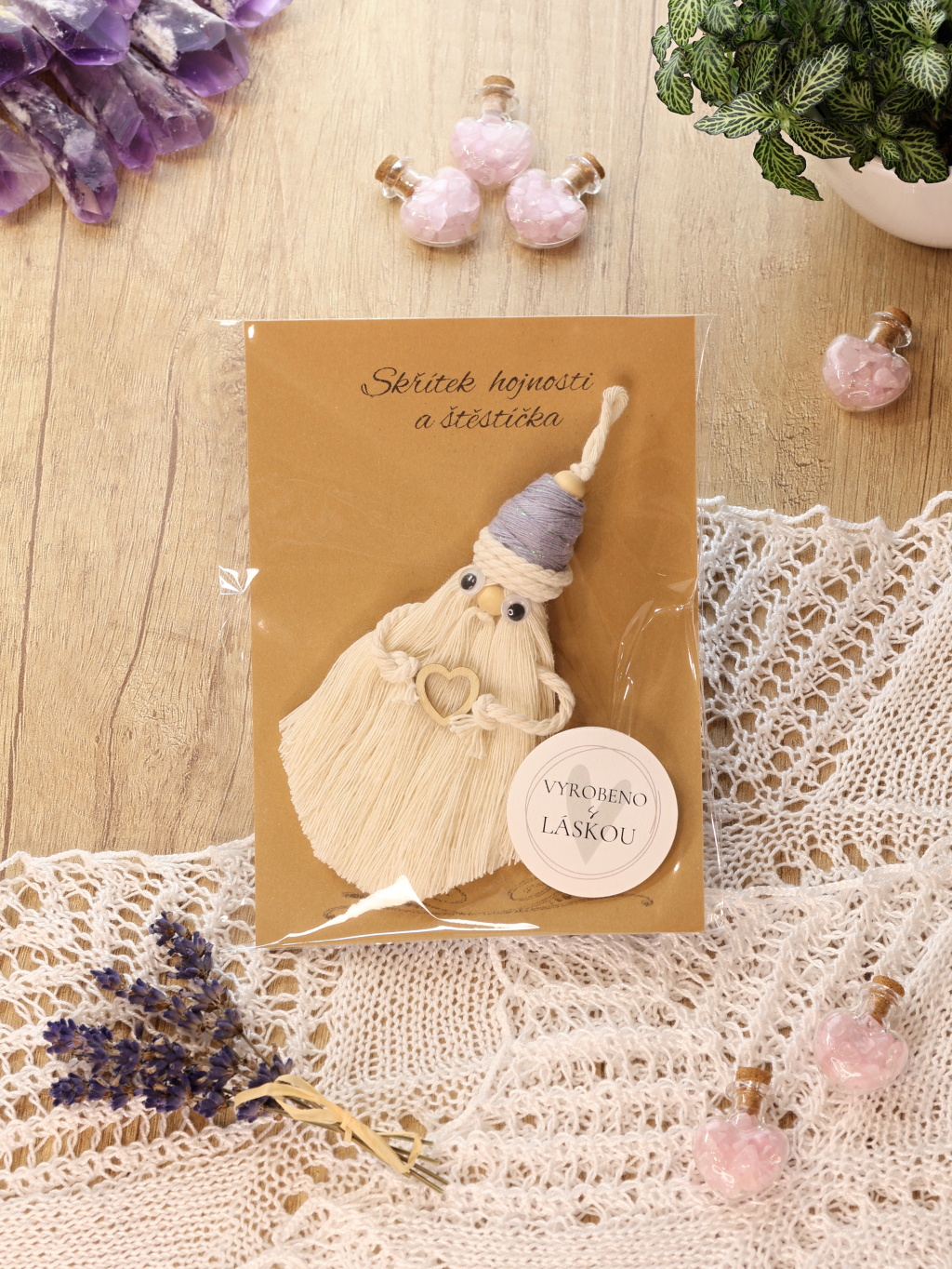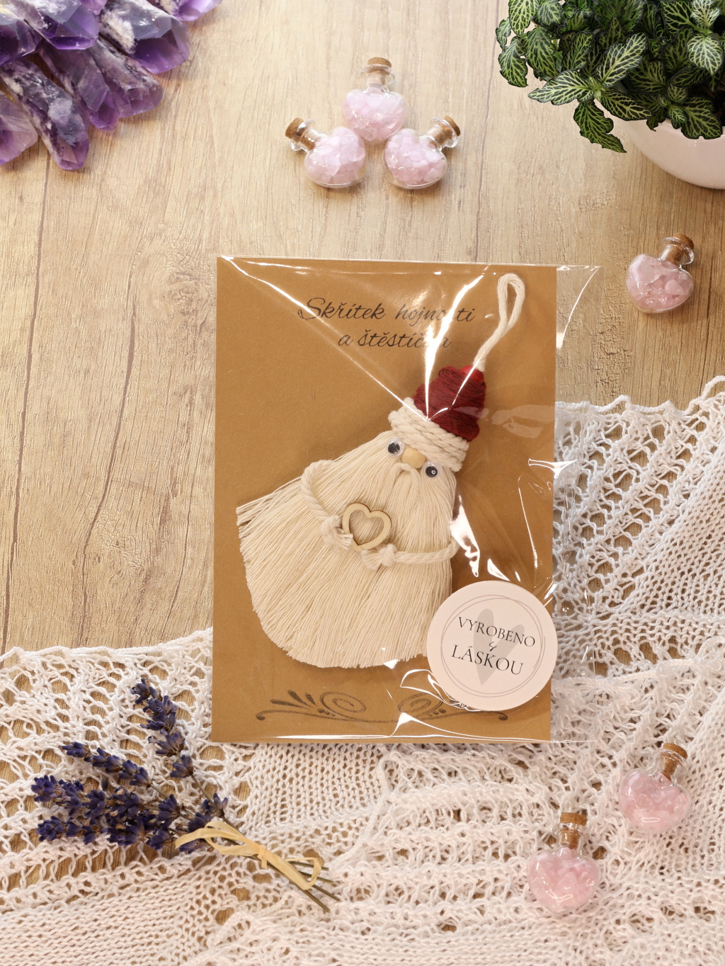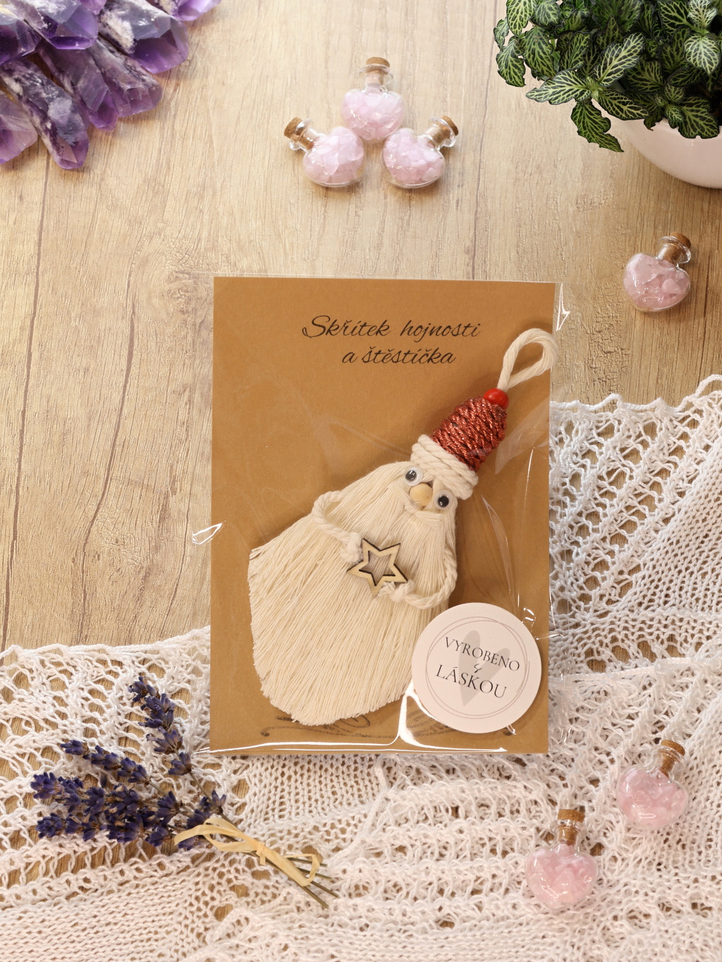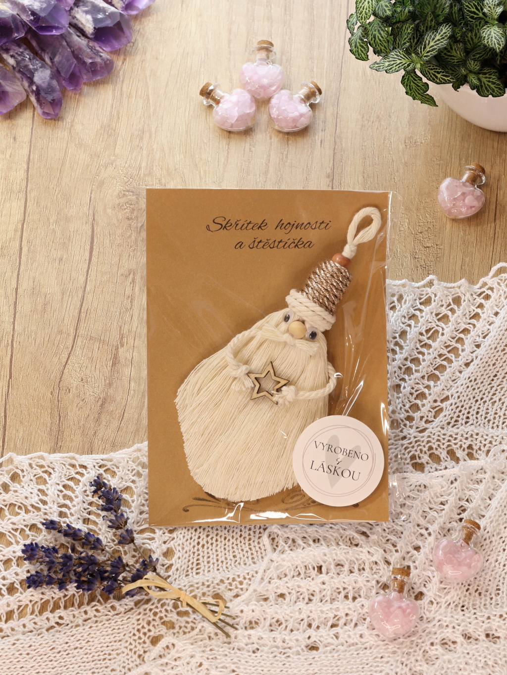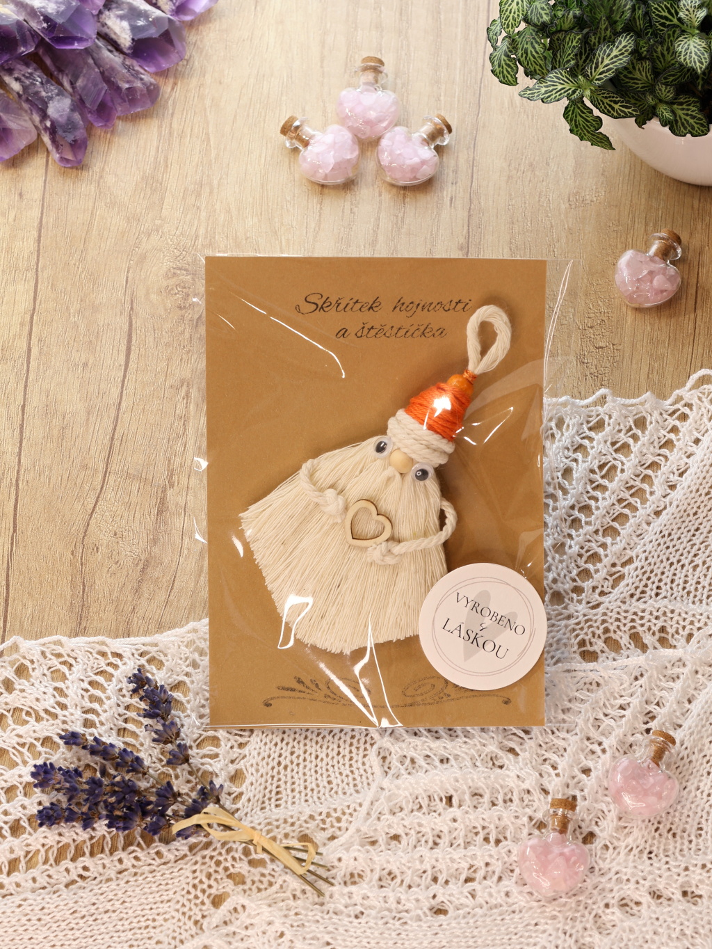Macramé Skřítek hojnosti a štěstíčka na Vánoce naladí i dárkem darovaný potěší.